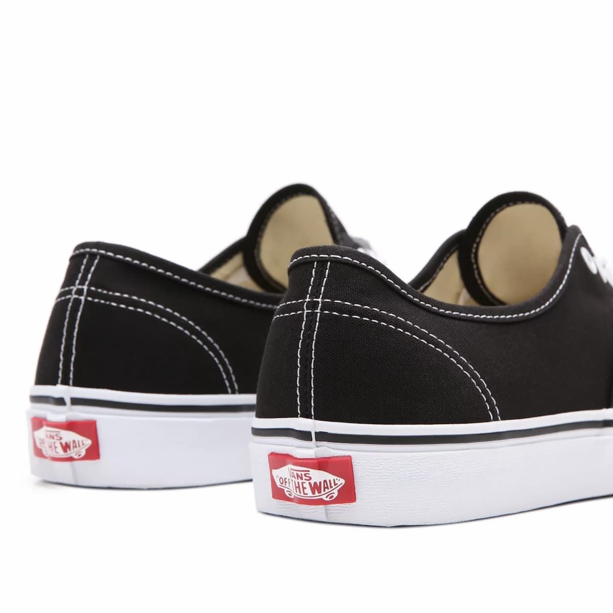 Zapatillas Vans Authentic negras y blancas unisex. El diseño original desde 1966, con lona resistente y suela waffle para un uso diario cómodo y versátil.