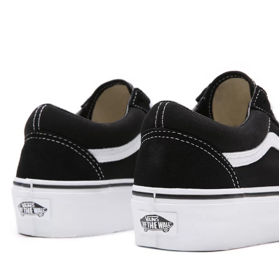 Las Zapatillas con plataforma Old Skool negras y blancas tienen una etiqueta de garantía Vans cosida en la lengüeta.