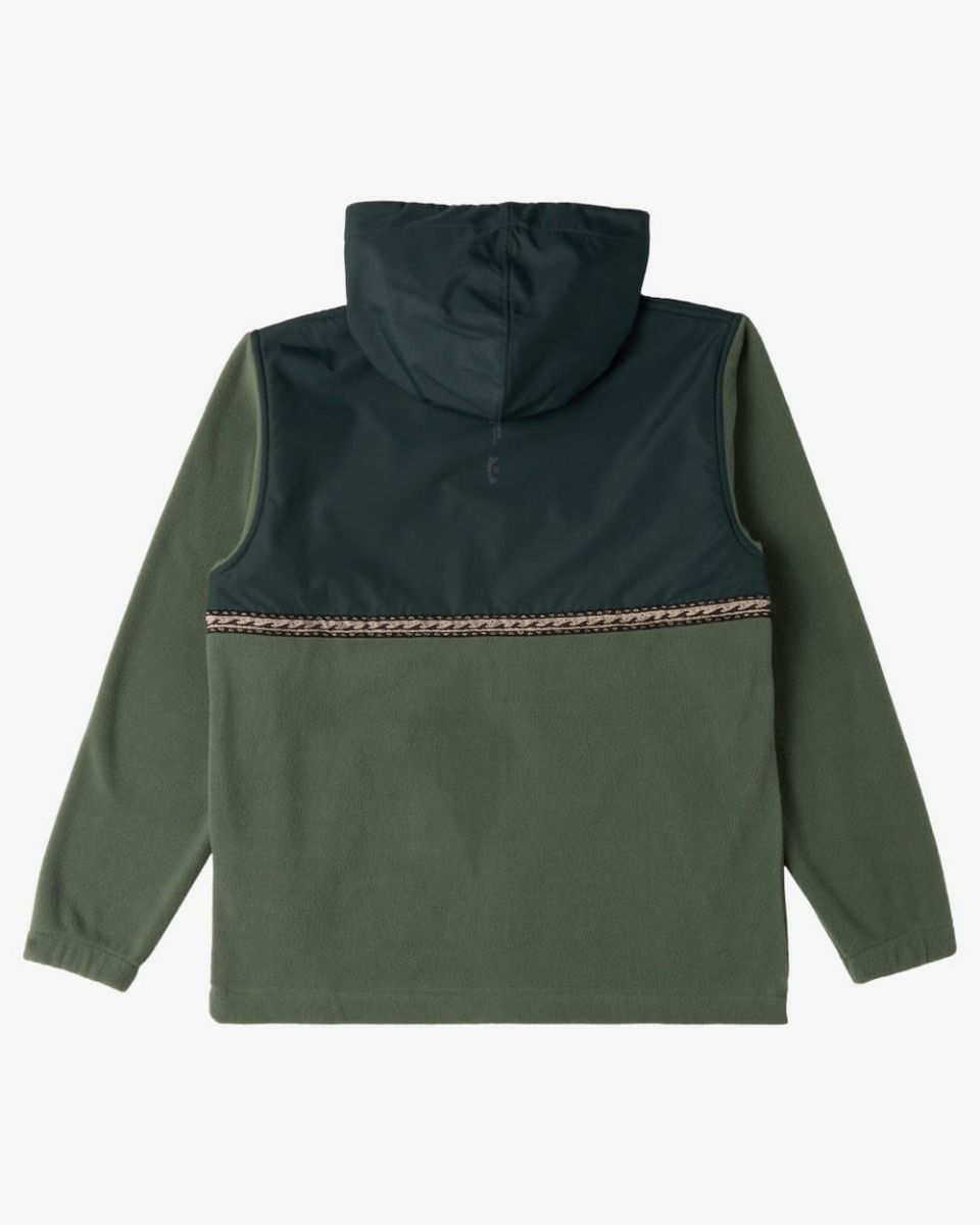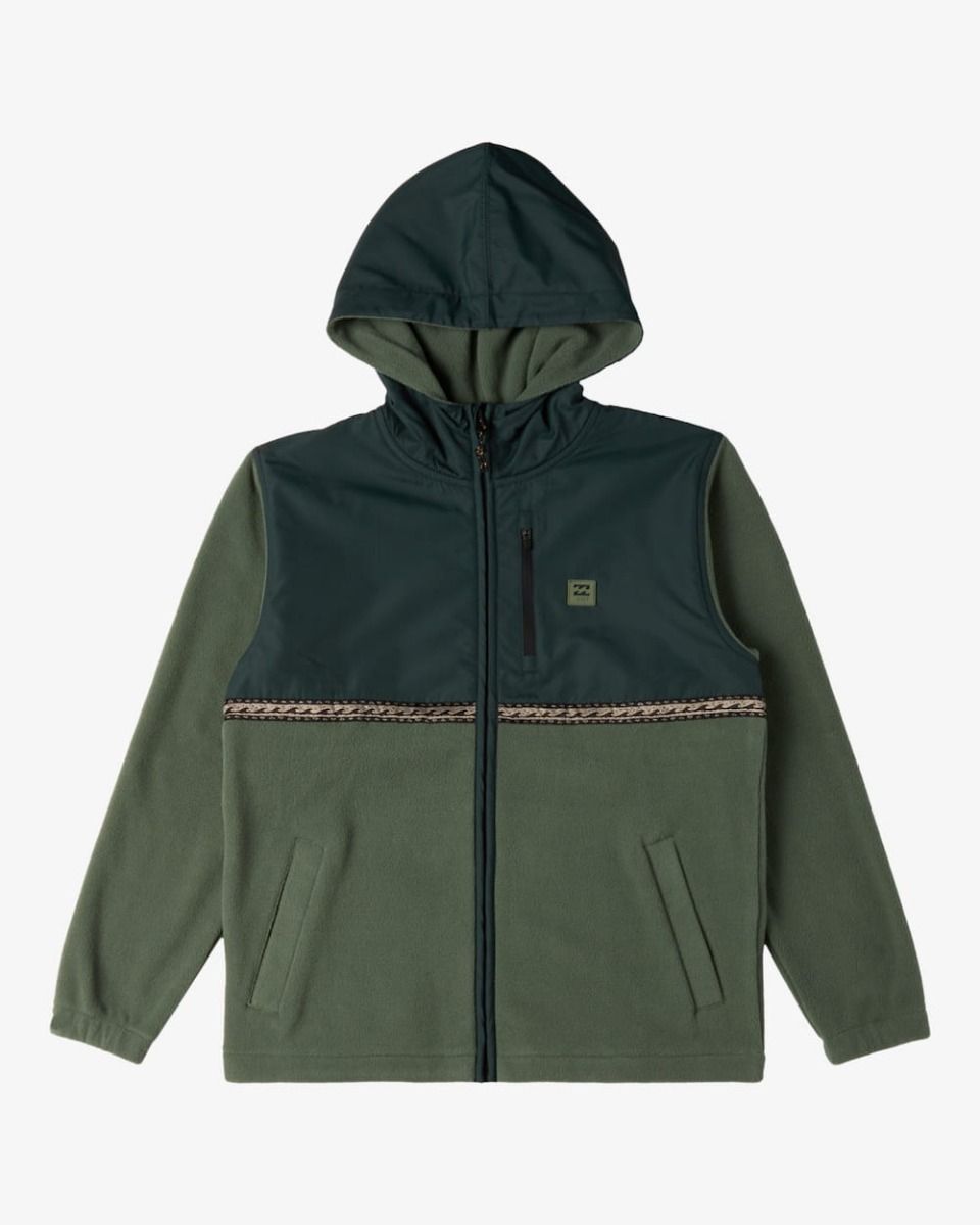 Esta chaqueta polar tipo sudadera, perteneciente a la Colección Adventure Division de Billabong, presenta corte normal, interior polar, capucha con cuello, cierre frontal de cremallera, cintura ajustable con cincha elástica, bolsillos delanteros para las manos, un bolsillo en el pecho con cremallera, cinta jacquard con dibujo de olas en el pecho, canesú superior y capucha con tejido ripstop en contraste y una etiqueta con el logo Adventure Division tejida en el lado izquierdo del pecho.