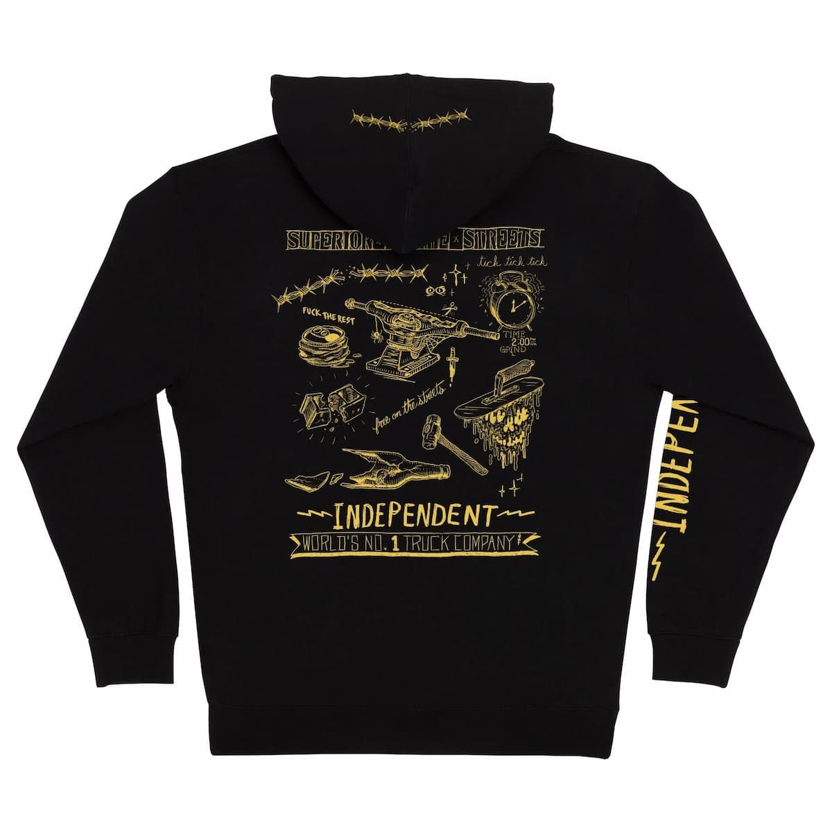 Sudadera Independent Bratrud Notebook negra con capucha y cremallera. Tejido grueso 10oz, corte regular y estampados gráficos de Todd Bratrud.