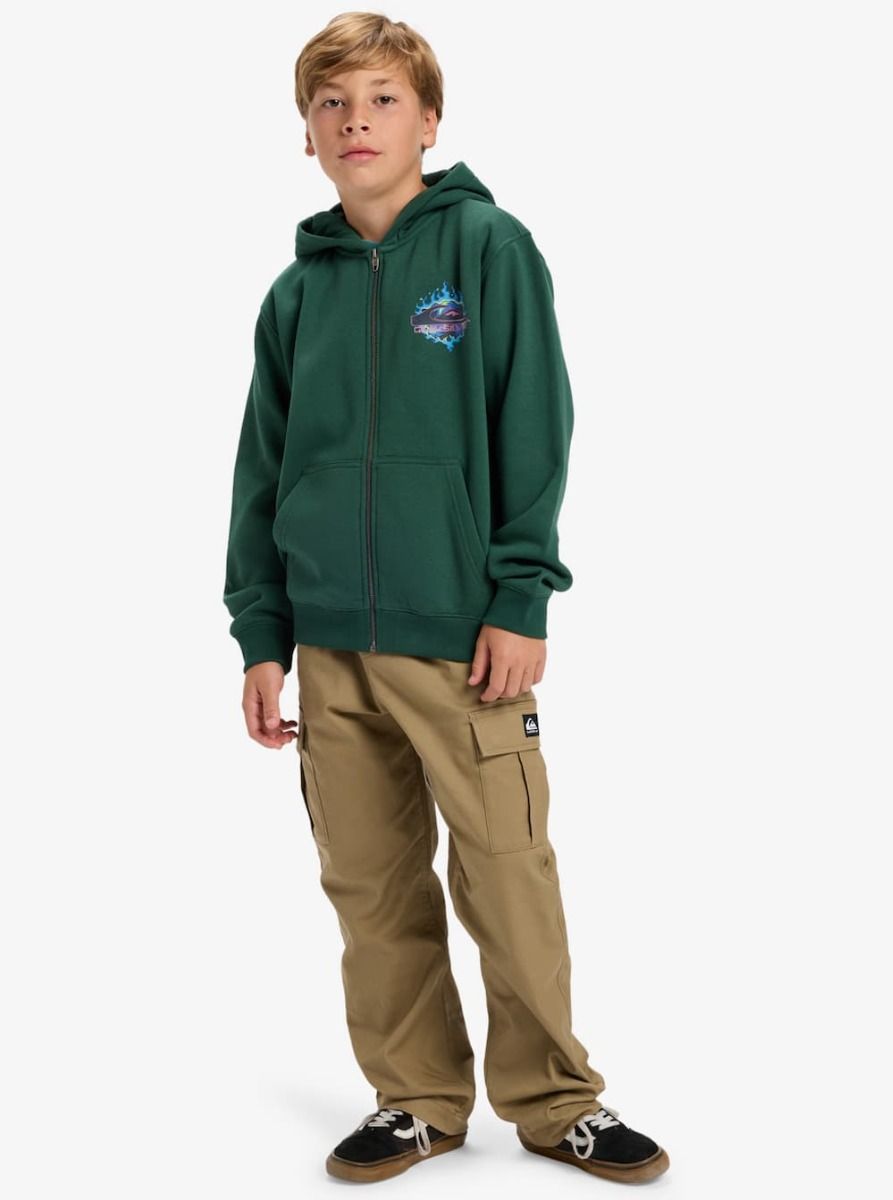 La Quiksilver Graphic Zip en color Trekking Green es una sudadera tipo chaqueta versátil para niños entre 8 y 16 años que combina comodidad, diseño y funcionalidad. Perfecta tanto para el cole como para tardes en el skatepark o escapadas al mar, esta prenda forma parte del universo Quiksilver pensado para pequeños riders con gran personalidad.